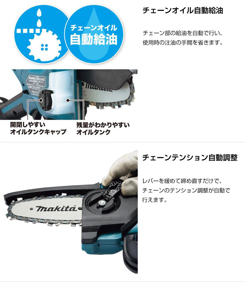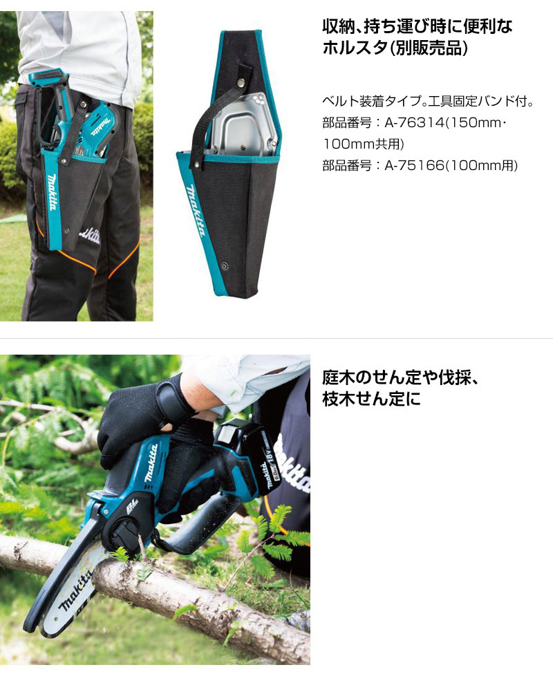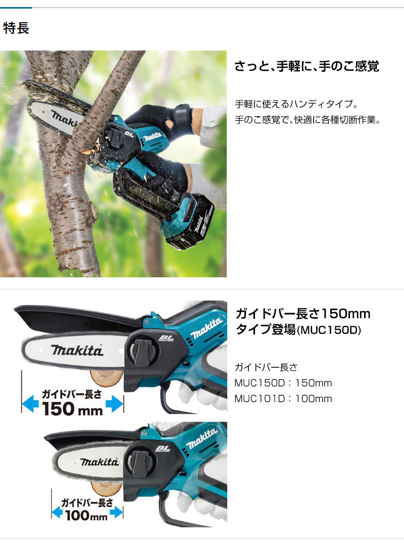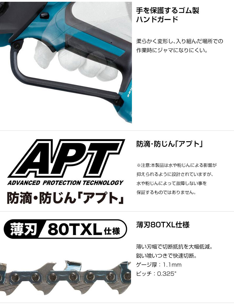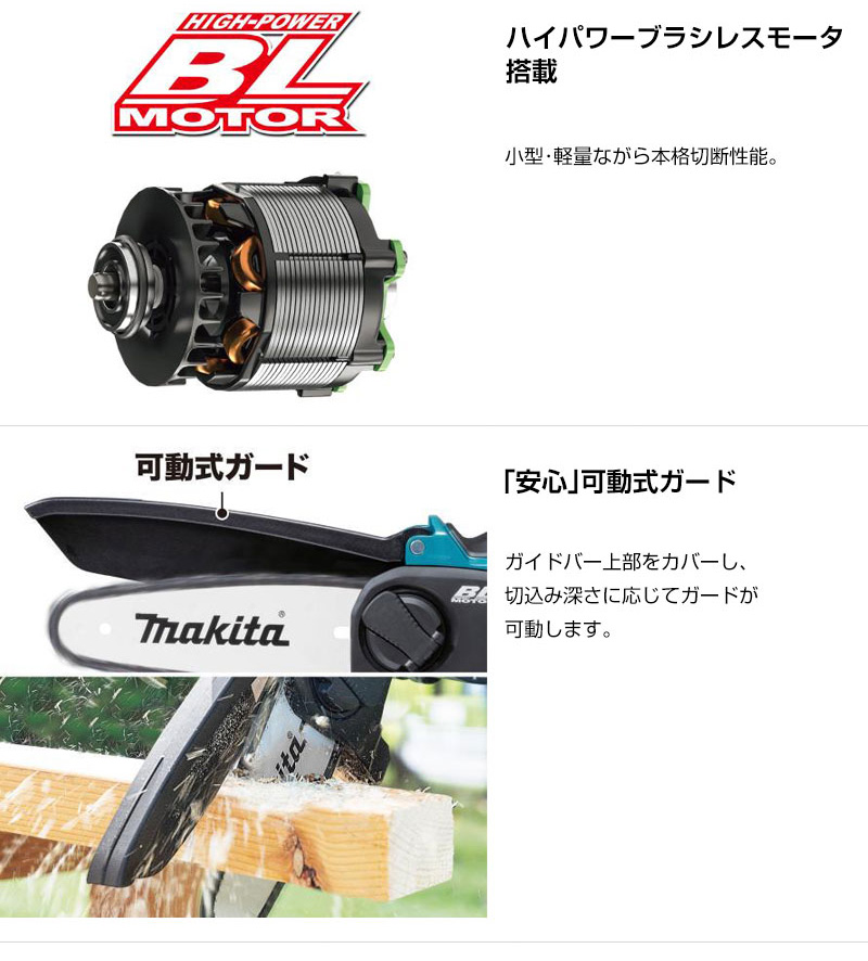 【本格派 庭木 果樹 竹 伐採 枝木せん定 木工作業 手軽 手のこ感覚 チェーンオイル自動給油 小型 軽量 可動式ガード ハンドガード 薄刃 充電式 コードレス 工具 電動工具 DIY ツール 工具 用品 makita 純正品】