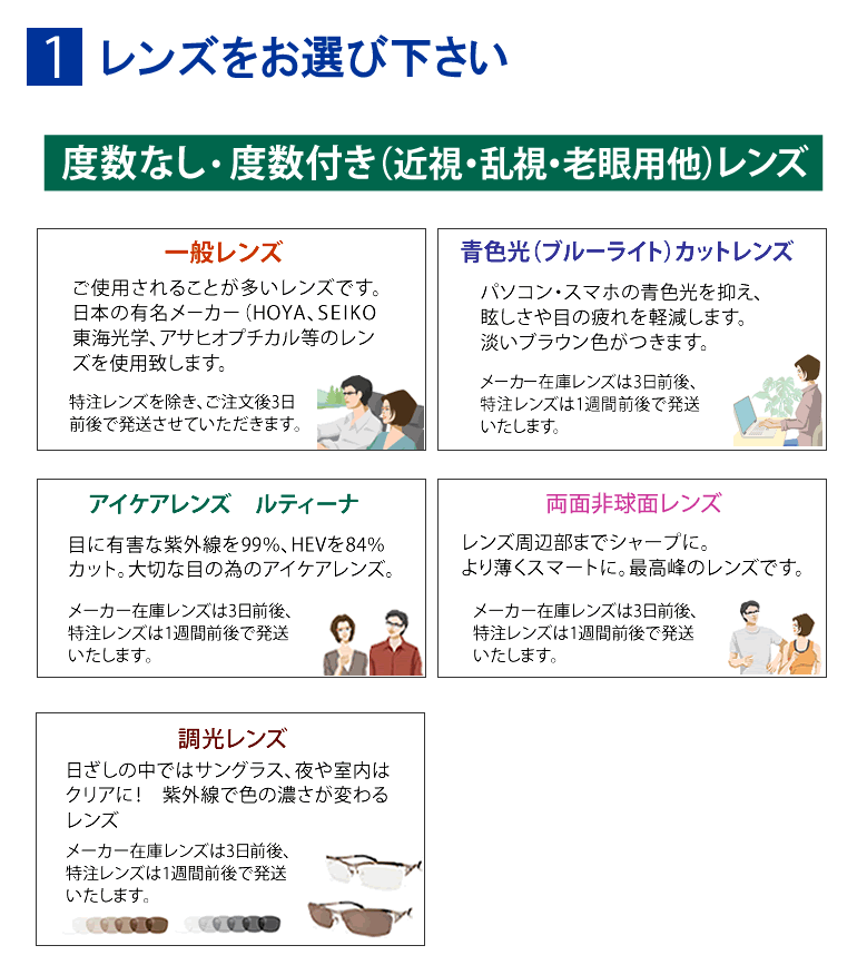 [フレームのみ]及び[レンズ入れ替え]のご注文の場合は即日〜3日前後で