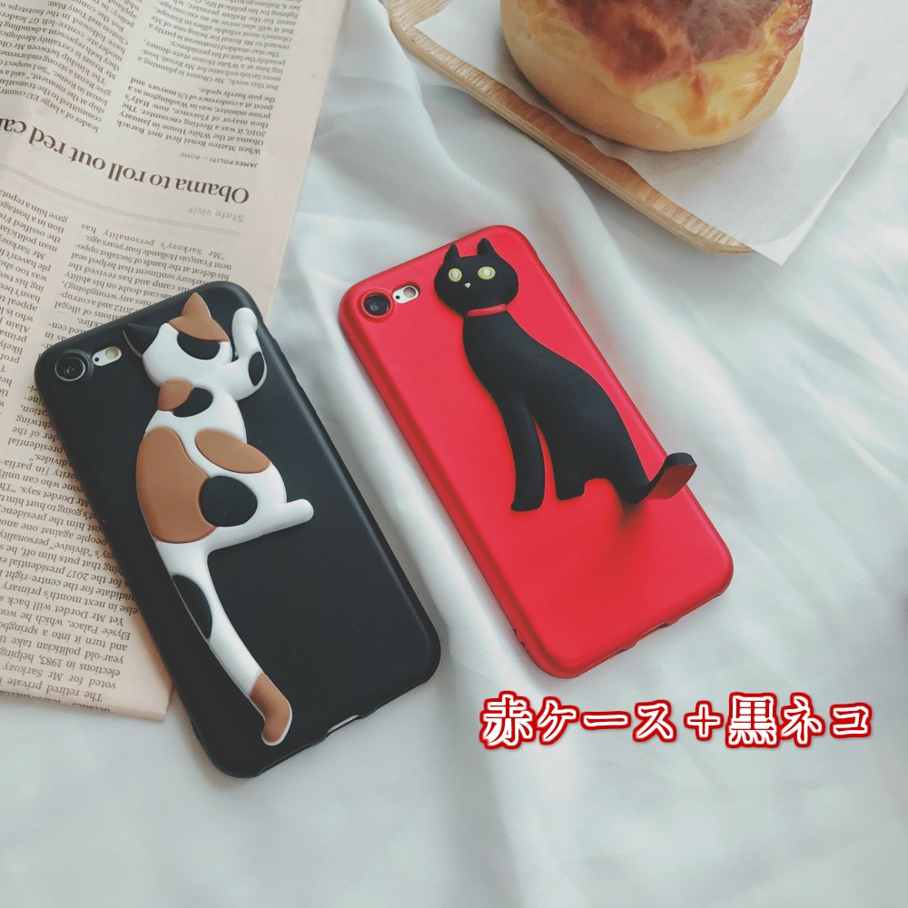赤ケース+黒色ネコ、赤ケース+灰色ネコ、黒ケース+花ネコ、黒ケース+白ネコ、黒ケース+白黒ネコ