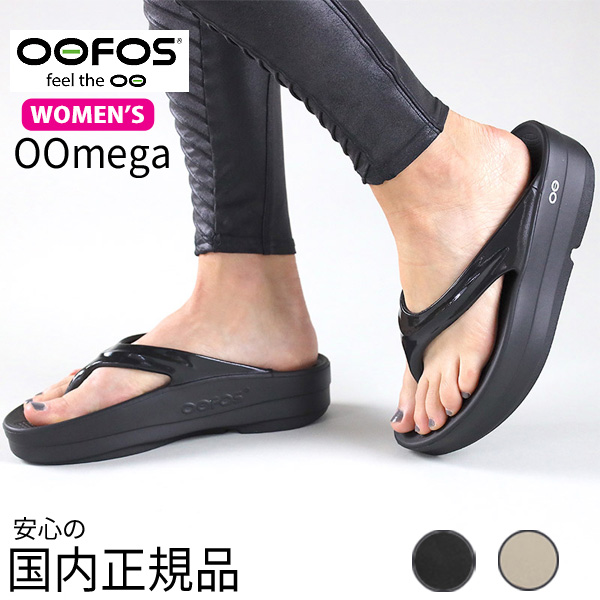OOFOS Women's OOmega / ウーフォス ウーメガ 厚底 リカバリーサンダル トングサンダル ビーチサンダル ブラック ノマド 200044 BLACK NOMAD