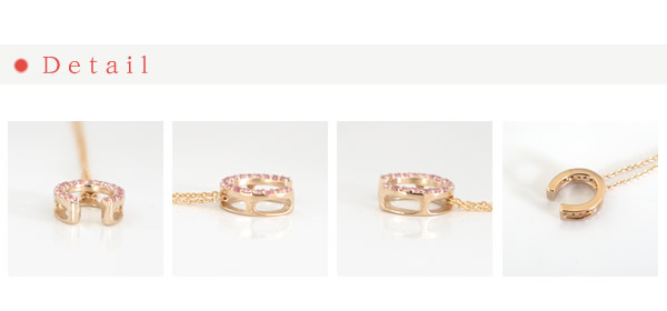 時と場所を選ばず、また年齢も10代から60代の方までどんな方にでも愛されるピンクサファイアの馬蹄ネックレス。