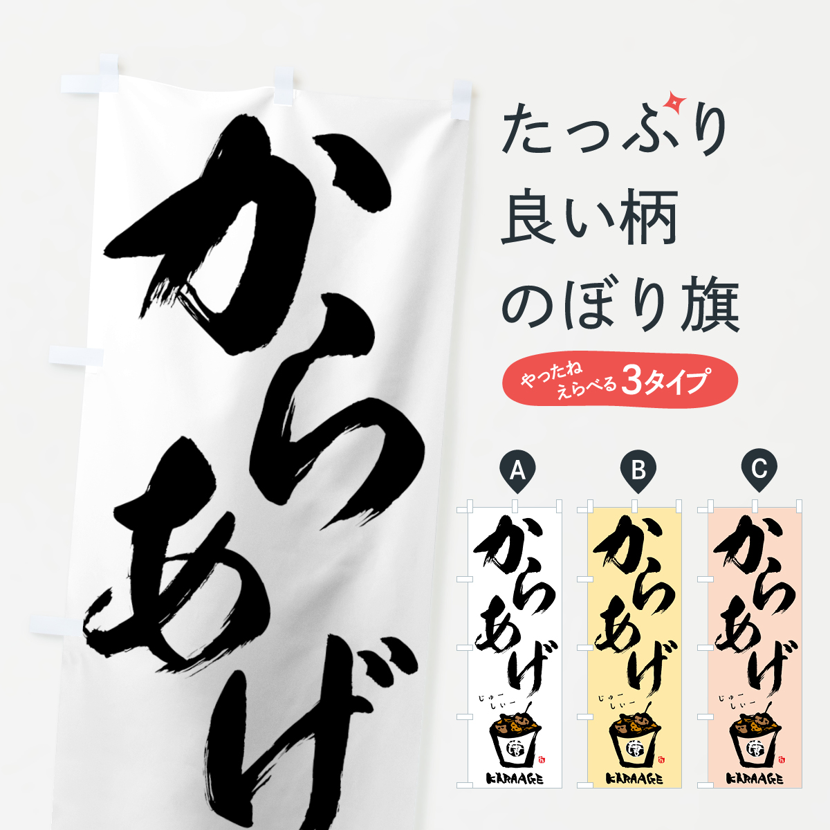 ●生地 : ポンジ、テトロンポンジ(一般的なのぼり旗の生地)