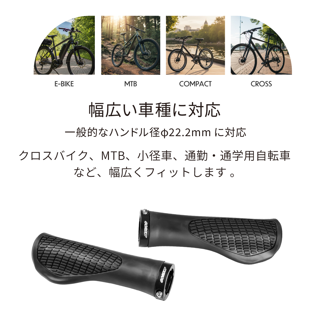 グリップ 自転車 自転車グリップ エルゴグリップ エルゴ クロスバイク MTB エルゴ形状 とは ハンドルグリップ 手のひら 疲れにくい 手首 痛くならない しびれ対策 長時間 走行 疲労軽減 握りやすい 滑らない 雨でも 滑りにくい 汗 通勤 ベタつかない ラバー ベタベタ しない ゴム 臭くない ロックオン ズレない ロックリング 交換 簡単 初心者 カスタム