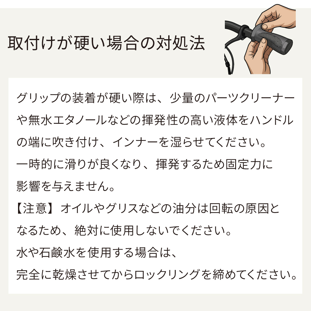 【注意事項】・取付前にハンドルバーの汚れ・油分を除去してください。