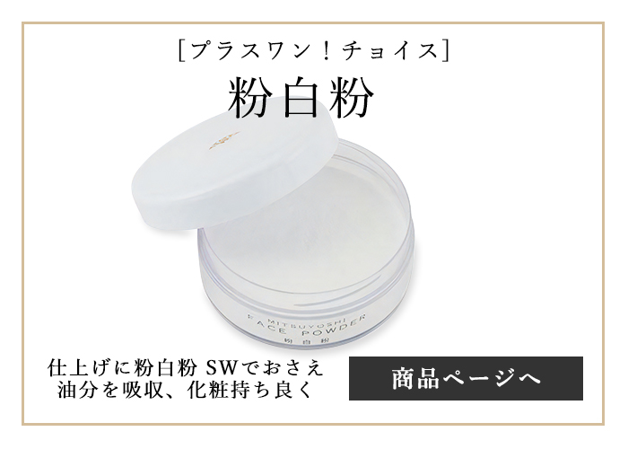 仕上げに粉白粉 SWでおさえることで余計な油分を吸収し、化粧持ちが良くなります。