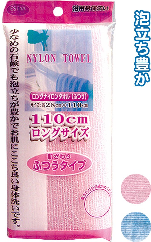【まとめ買い=注文単位12個】ロングナイロンタオル(ふつう) アソート(色おまかせ) 40-350(se2a389)