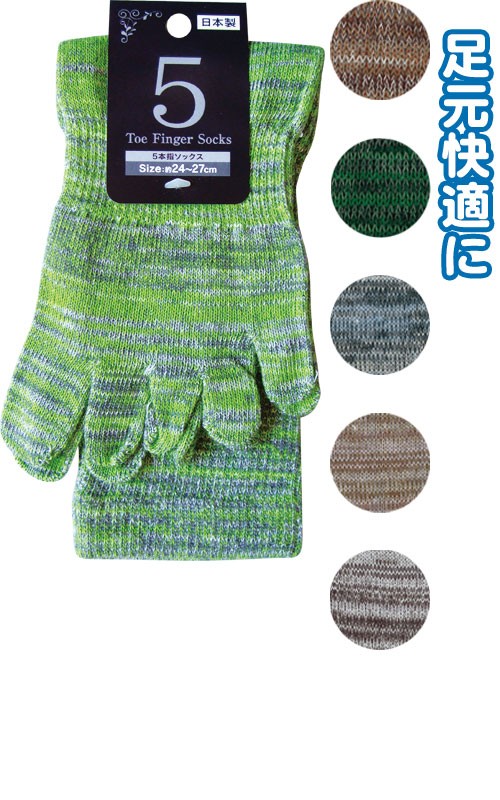 【まとめ買い=注文単位10個】綿混5本指ソックス 靴下 メンズ レディース 24〜27cm アソート(色柄おまかせ)34-741(se2c110)