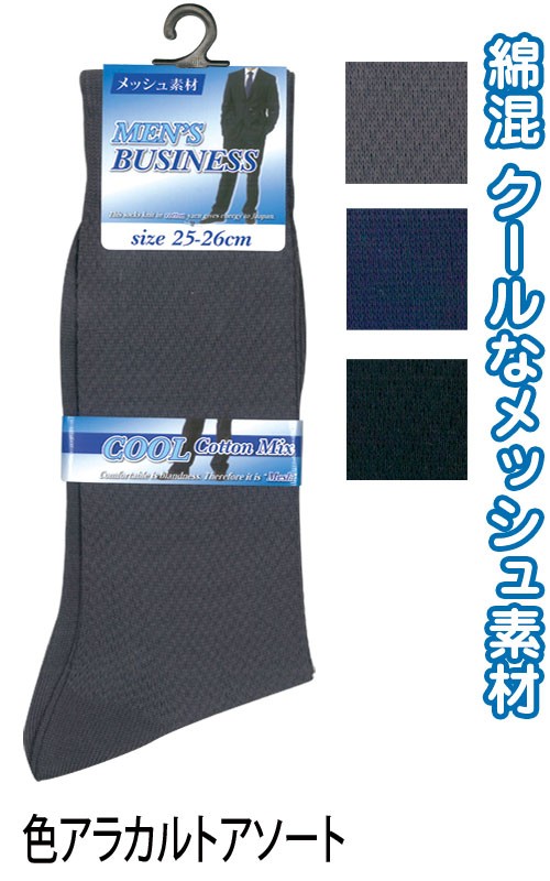 【まとめ買い=10個単位】紳士 綿混 無地 メッシュ ビジネスソックス 靴下 メンズ 415-3-1 アソート(色おまかせ) 47-666(se2d993)