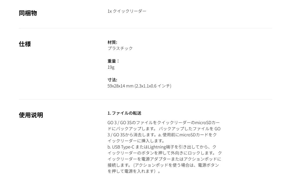 Insta360 GO3/GO3S クイックリーダー CINSBATE