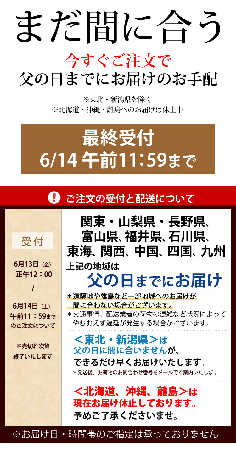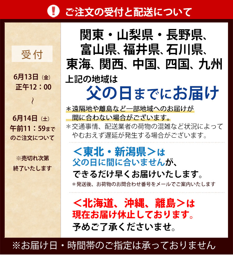 *父の日期間中は全国的にご注文数が集中し、