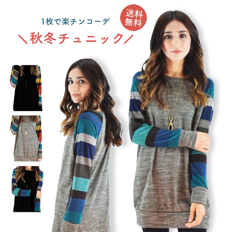 レディース チュニック ワンピース 長袖 チュニック丈ロングトレーナー 秋コーデ 春 秋 冬 50代 40代 体型カバー コーデ 大きいサイズ M LL 2L 3L XL XXL ブラック 黒 グレー