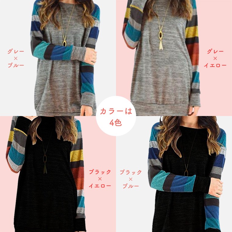 商品名:レディース チュニック ワンピース 長袖 チュニック丈ロングトレーナー 秋コーデ 春 秋 冬 50代 40代 体型カバー コーデ 大きいサイズ M LL 2L 3L XL XXL ブラック 黒 グレー