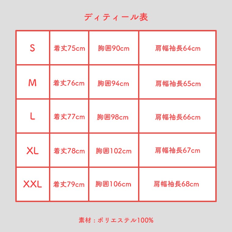 【XXLサイズ】着丈 約79cm、胸囲 約106cm、肩幅袖長 約68cm