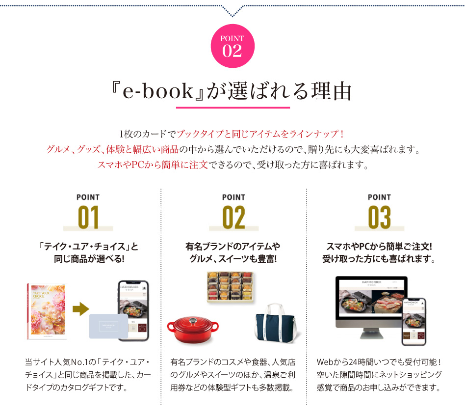 カードで贈り、WEB上で商品を選べる「e-book(イーブック)」は、