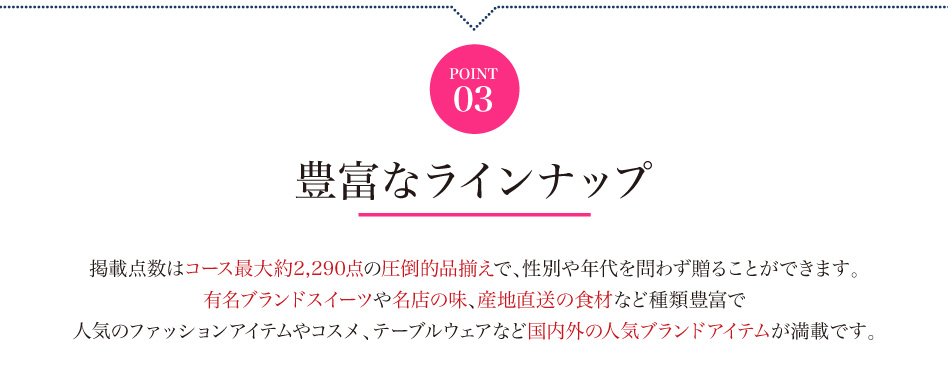 全16コースと価格帯も広く、結婚内祝いや出産内祝い、香典返し、各種記念品など様々なギフトシーンでご活用いただけます。