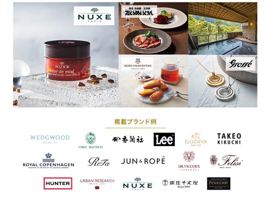 有名ブランドのアイテムや体験ギフト、温泉、グルメが充実!