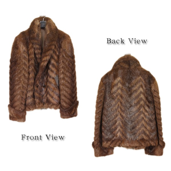 母の日 / ギフト / プレゼント / セール / 敬老の日 / 豊かな光沢が特徴のヌートリアを、見た目にもワイルドなメンズブルゾンに仕立てました。本来は刈毛をする事で非常にシルキーな肌触りが特徴であるヌートリアですが、あえて刺し毛をそのままにして尚且つボーダーデザインを採用することによってワイルドな見た目ながら、非常に上品で気品のある雰囲気を醸し出す仕上がりになりました。外側2箇所、内側1箇所に使いやすいサイズのポケットを配置。