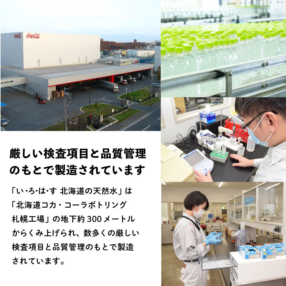 『い・ろ・は・す』は、日本各地の厳選したおいしい“地元の天然水”を、コカ・コーラ独自の厳しい品質管理を経て、安心・安全なおいしい水をみなさまにお届けしています。また、売上の一部を日本の水源を守る活動に寄付しており、『い・ろ・は・す』を美味しく飲んでいただくことが、未来の水を育むというサスティナブルに貢献する仕組みとなっています。ペットボトルは、ボトルから直接飲むパーソナル飲用のスタイルに適したスリムなボトルとなっており、北海道の自然を感じる950mlPET限定デザイン。ぜひ、日常の水分補給や家庭内ストックとして、『い・ろ・は・す』をお試しください。