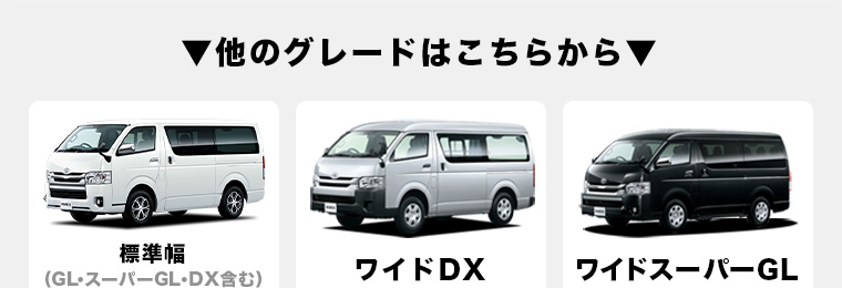 ★200系ハイエース、レジアスエース スーパーロング DX 4ドア、200系コミューターDX 1型 2型 3型 4型 5型 6型 7型 8型 200系コミューターGLはこちら