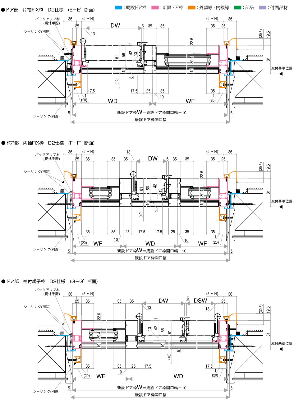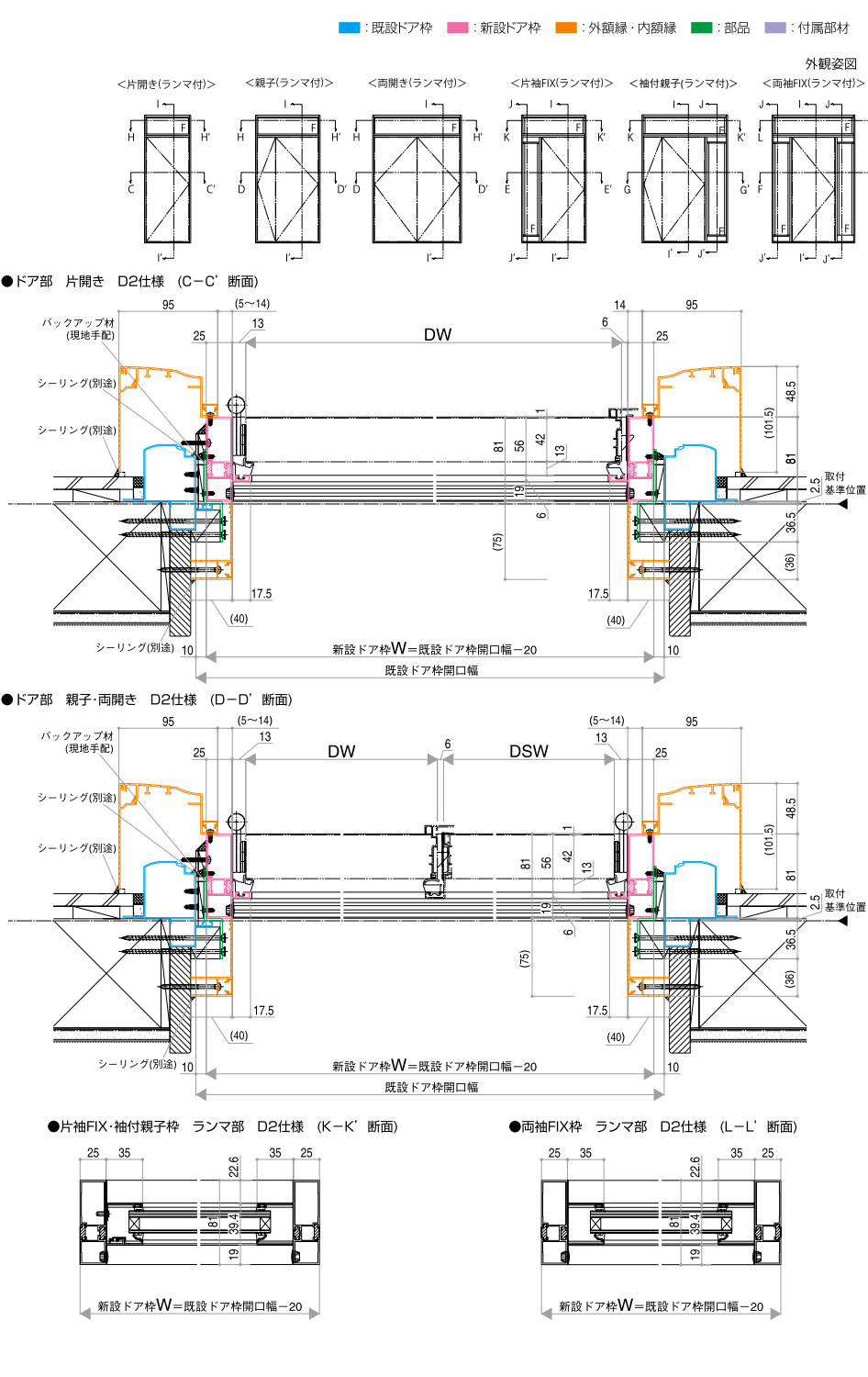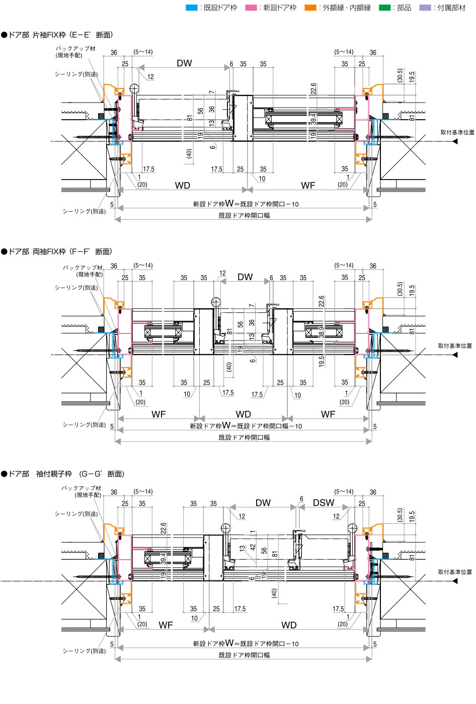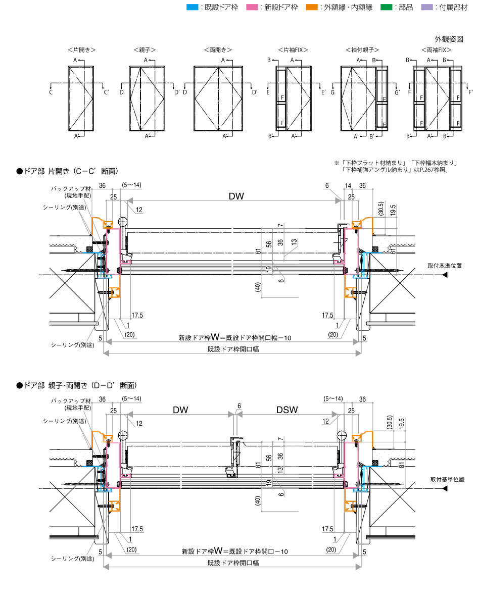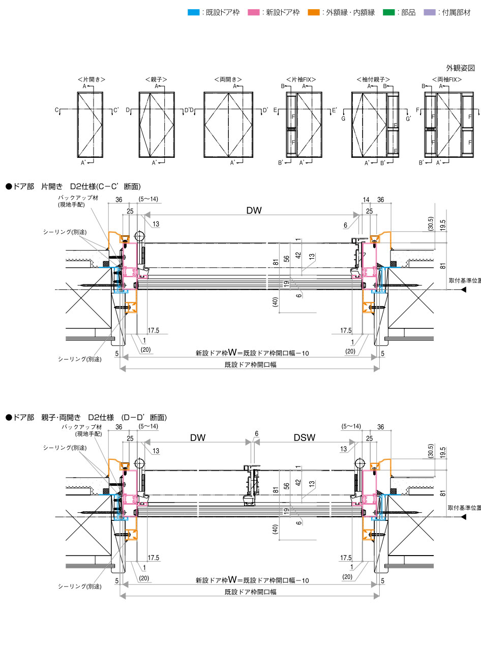 ・片袖FIX、両袖FIX、袖付き親子についての袖部分色は枠色と