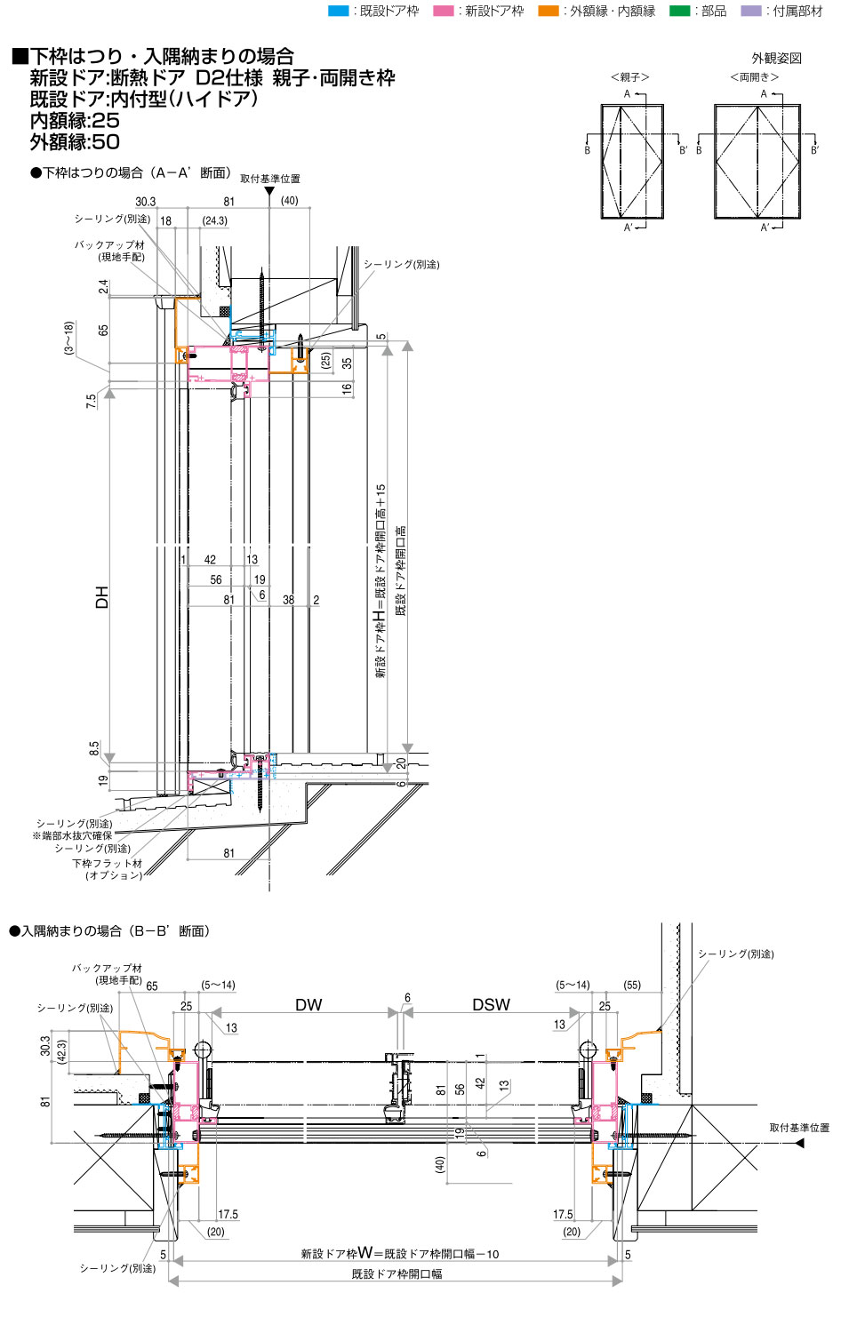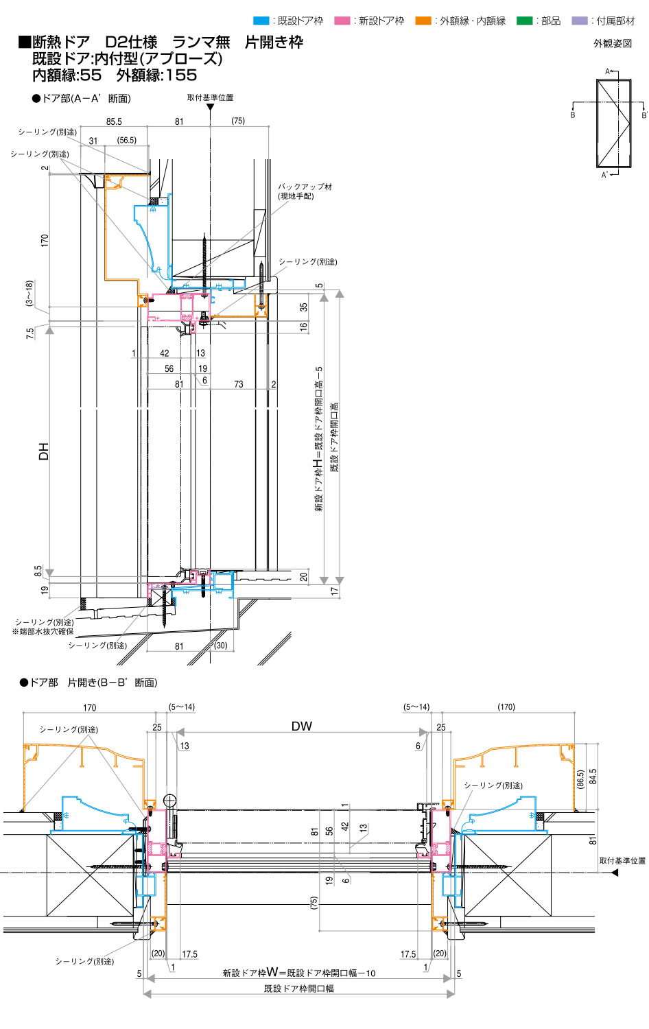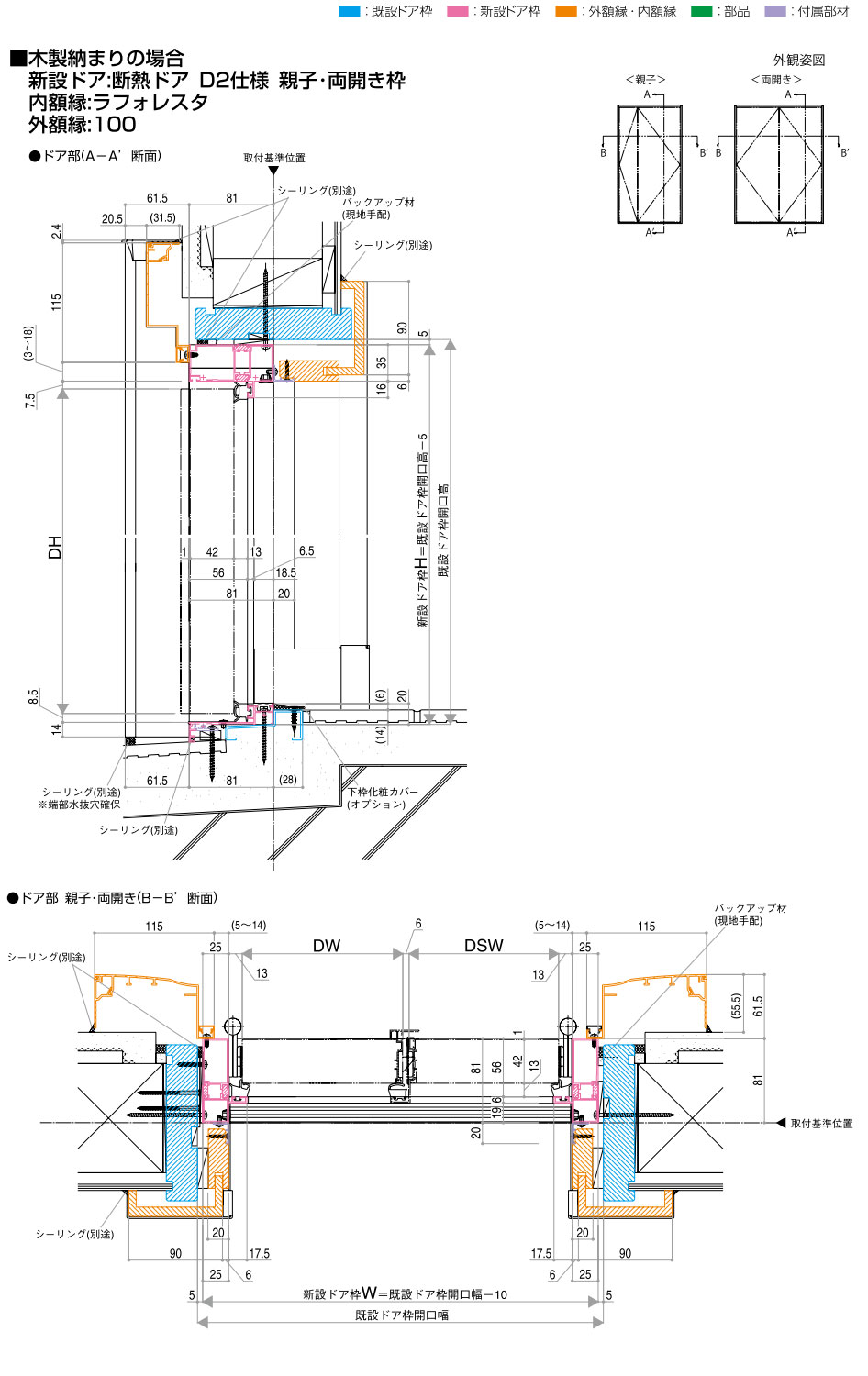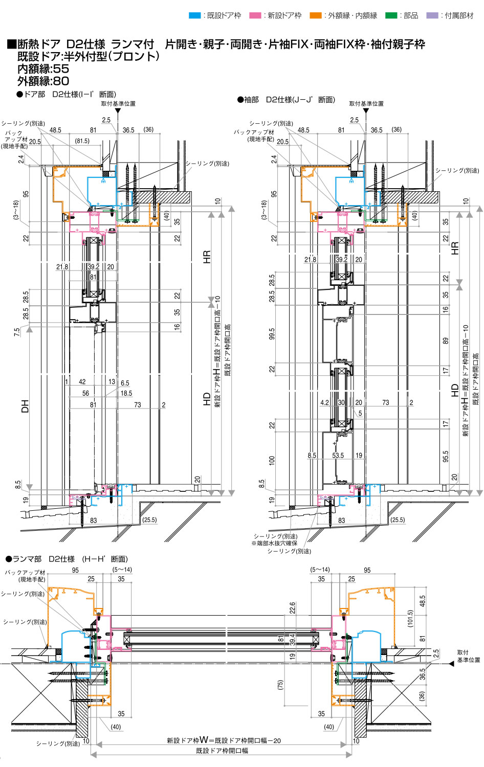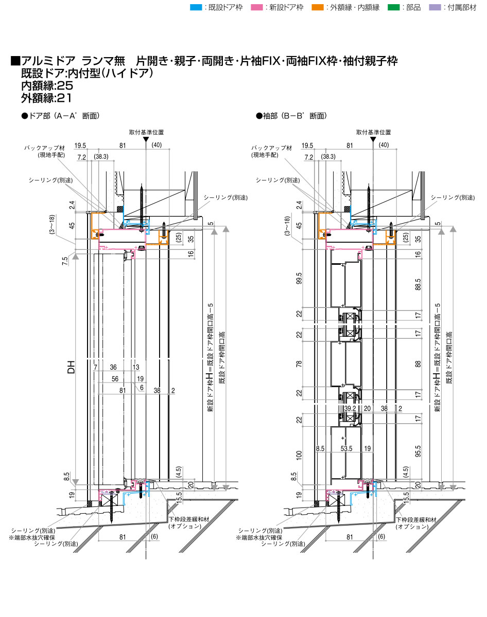 ・片袖FIX、両袖FIX、袖付き親子についての袖部分色は枠色と