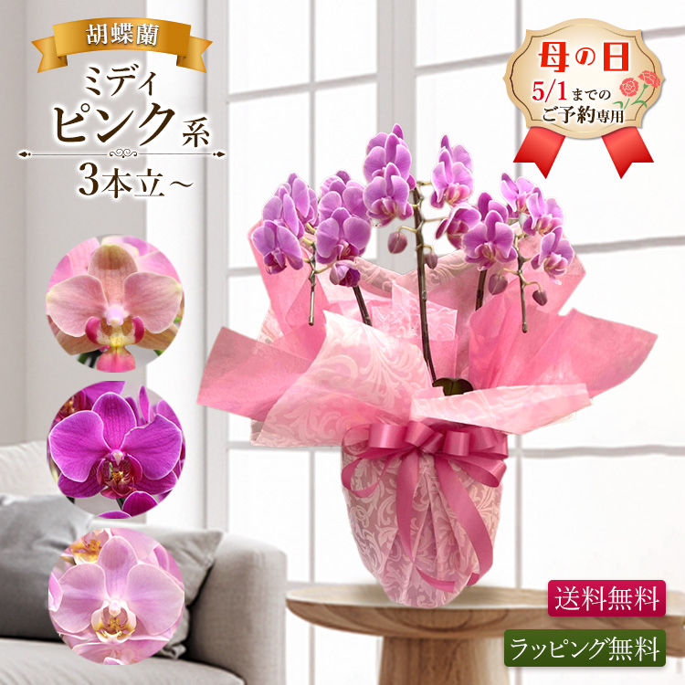 【2026年母の日ギフト・5/1までのご予約専用/数量限定】胡蝶蘭 ミディピンク 3本立以上 幸せが飛んで来る 爆買い [胡蝶蘭 ミディホワイト 母の日]