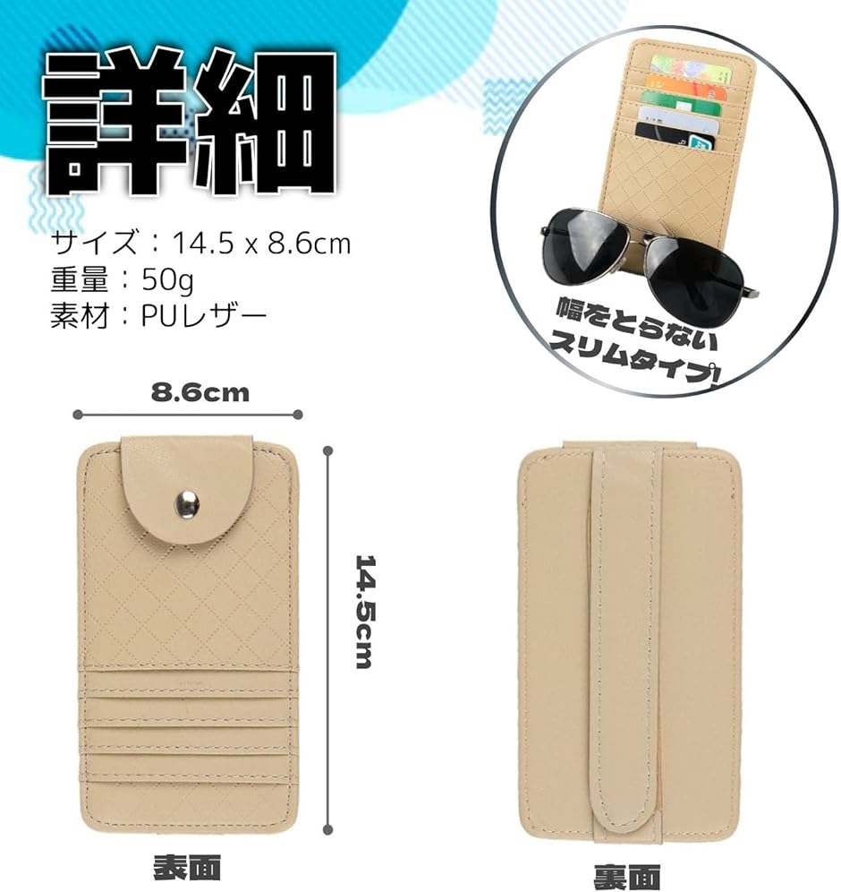 「商品詳細」サイズ:14.5 x 8.6cm/重量:50g/素材:PUレザー