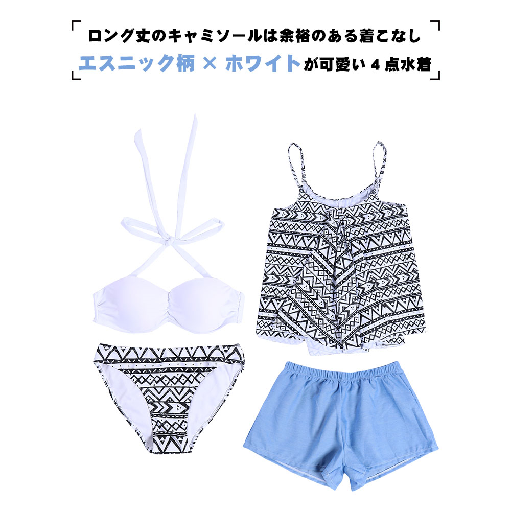 水着 レディース 4点セット 体型カバー S/M/L/LL キャミソール 大きいサイズ 体型カバー 30代 40代 20代 ヒップ 太もも ママ おしゃれ ぽっちゃり