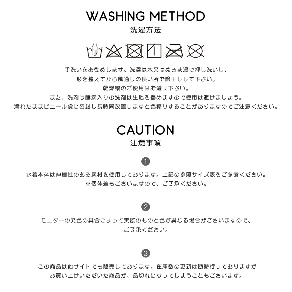 1、水着本体は伸縮性のある素材を使用しております。
