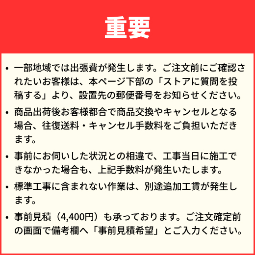 ※納品日(工事日)はご注文後、工事会社からのお電話でご調整いただきます。