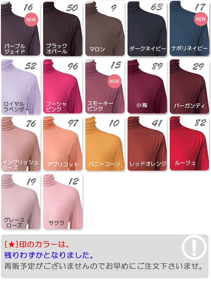 身頃部分2枚仕立て、袖部分も2枚仕立てです。ジャケットのインナーなどに最適です。レディースハイネックシャツ