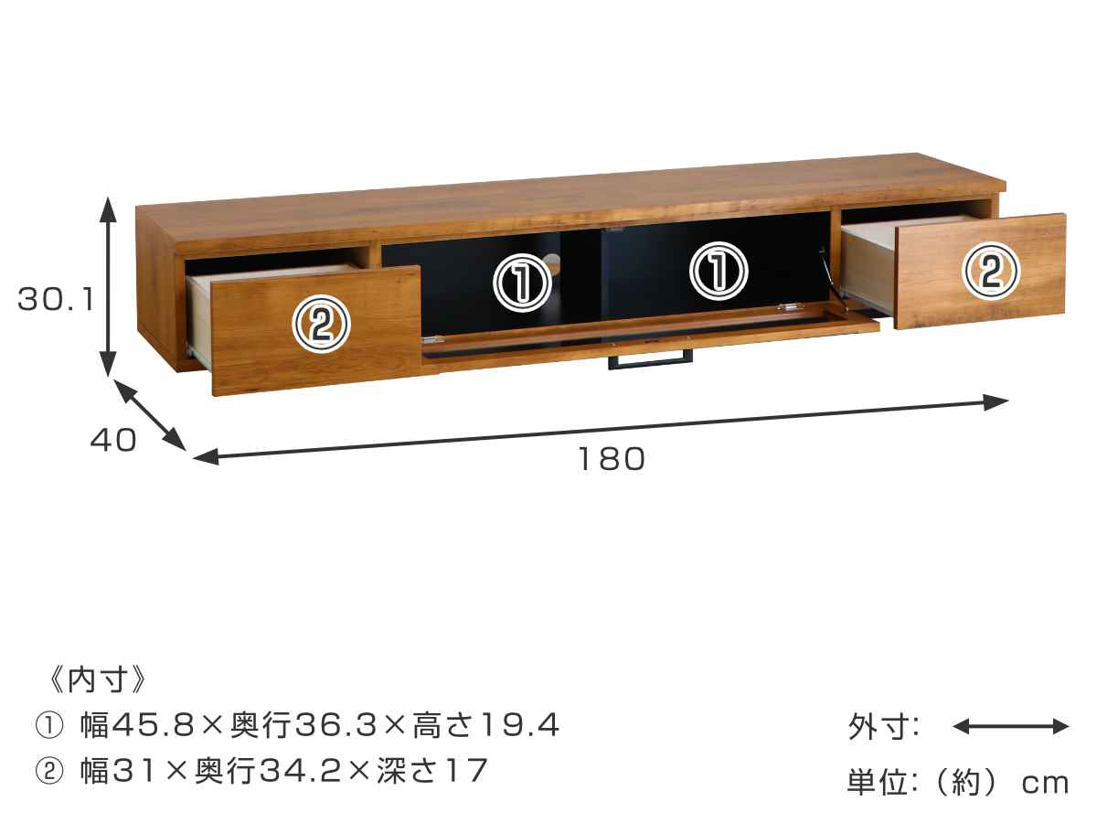 サイズ/約幅180×奥行40×高さ30.1cm