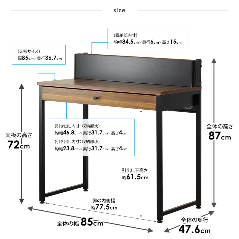 天板:幅85×奥行36.7×高さ72cm