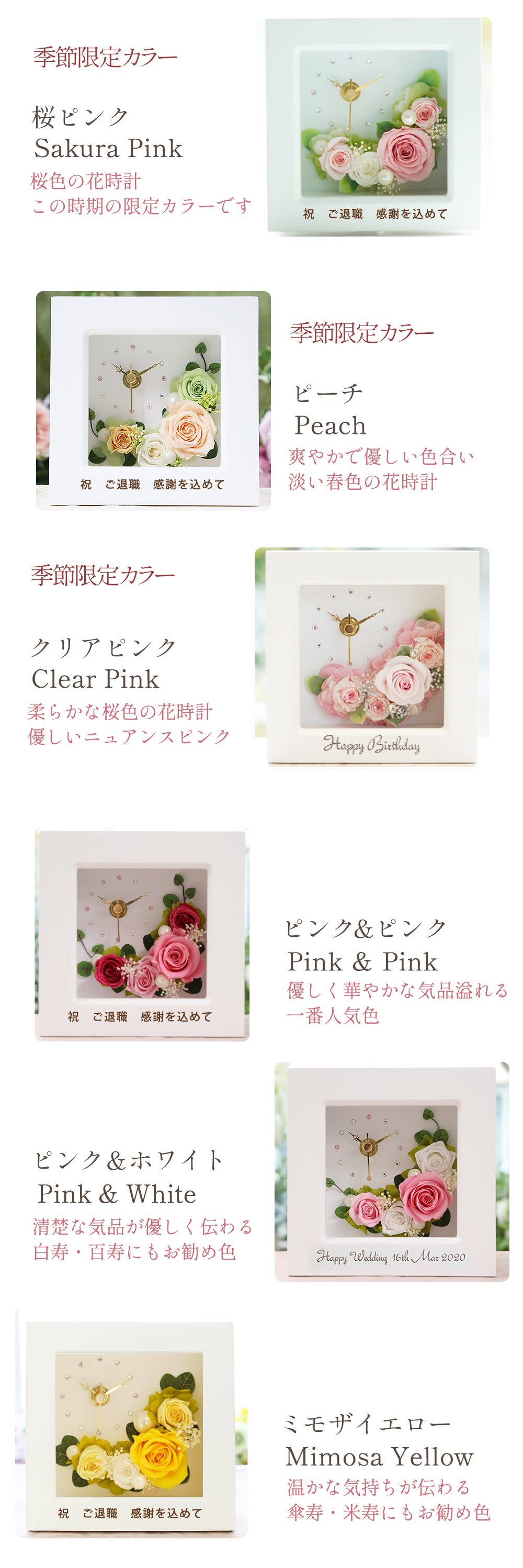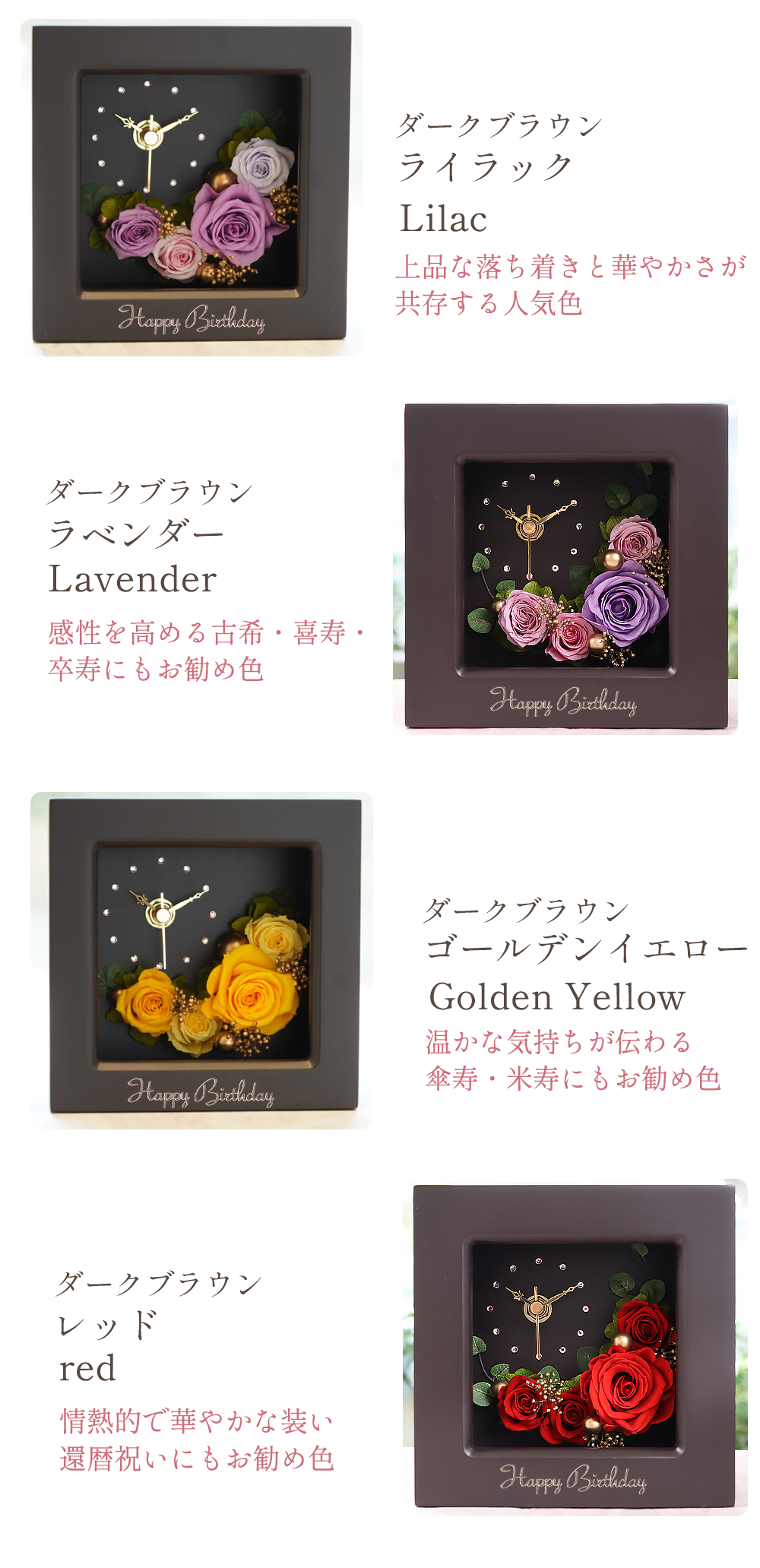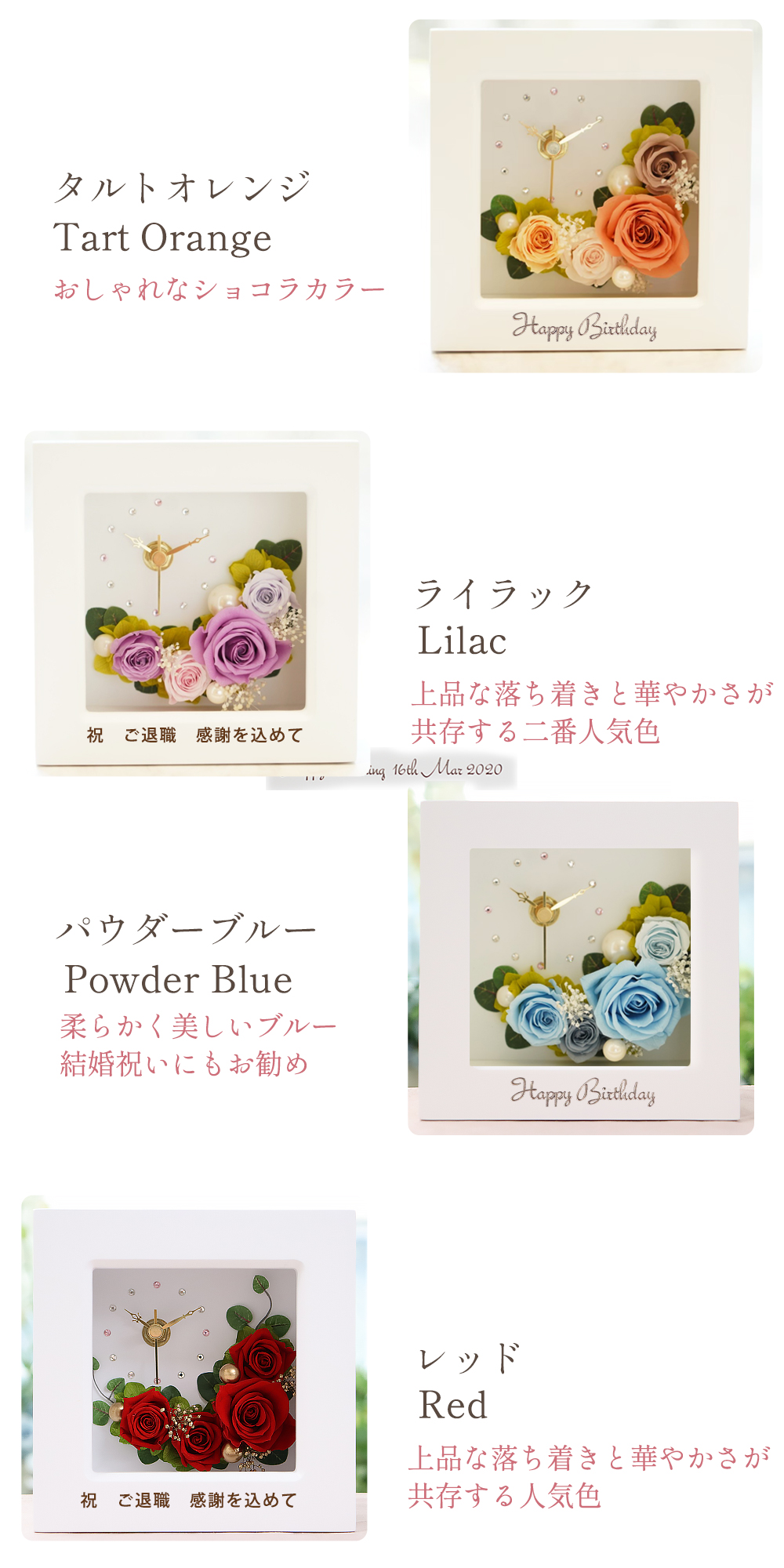 枯れないプリザーブドフラワーは、お祝い、御礼、感謝、労い、エール等、全ての温かいお気持ちを込めるのに最適なギフトです。