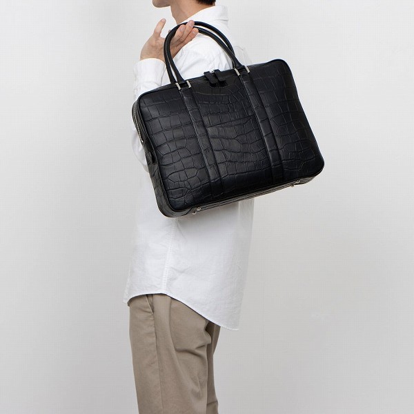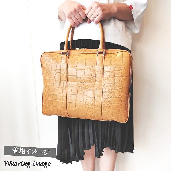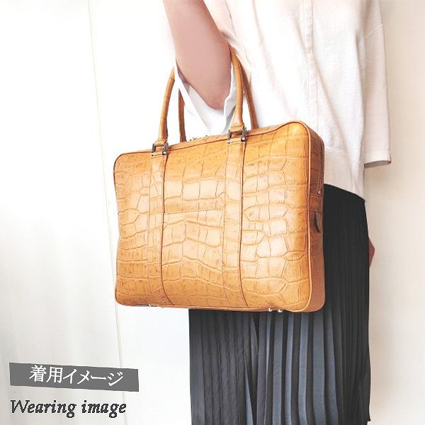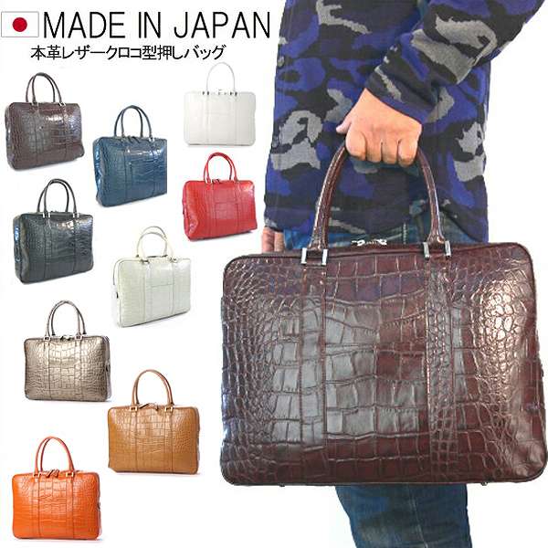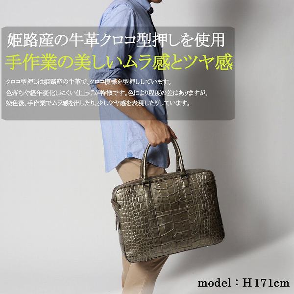 日本製 クロコ型押し 牛革 ブリーフバッグ ソフトブリーフ トートバッグ