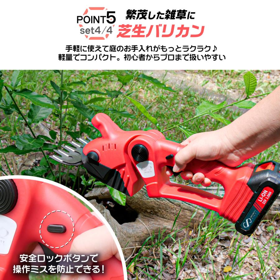 チェーンソー・バサミ共に、最新のブラシレスモーターを採用。従来のブラシモーターより3〜5倍の耐久性を誇り、