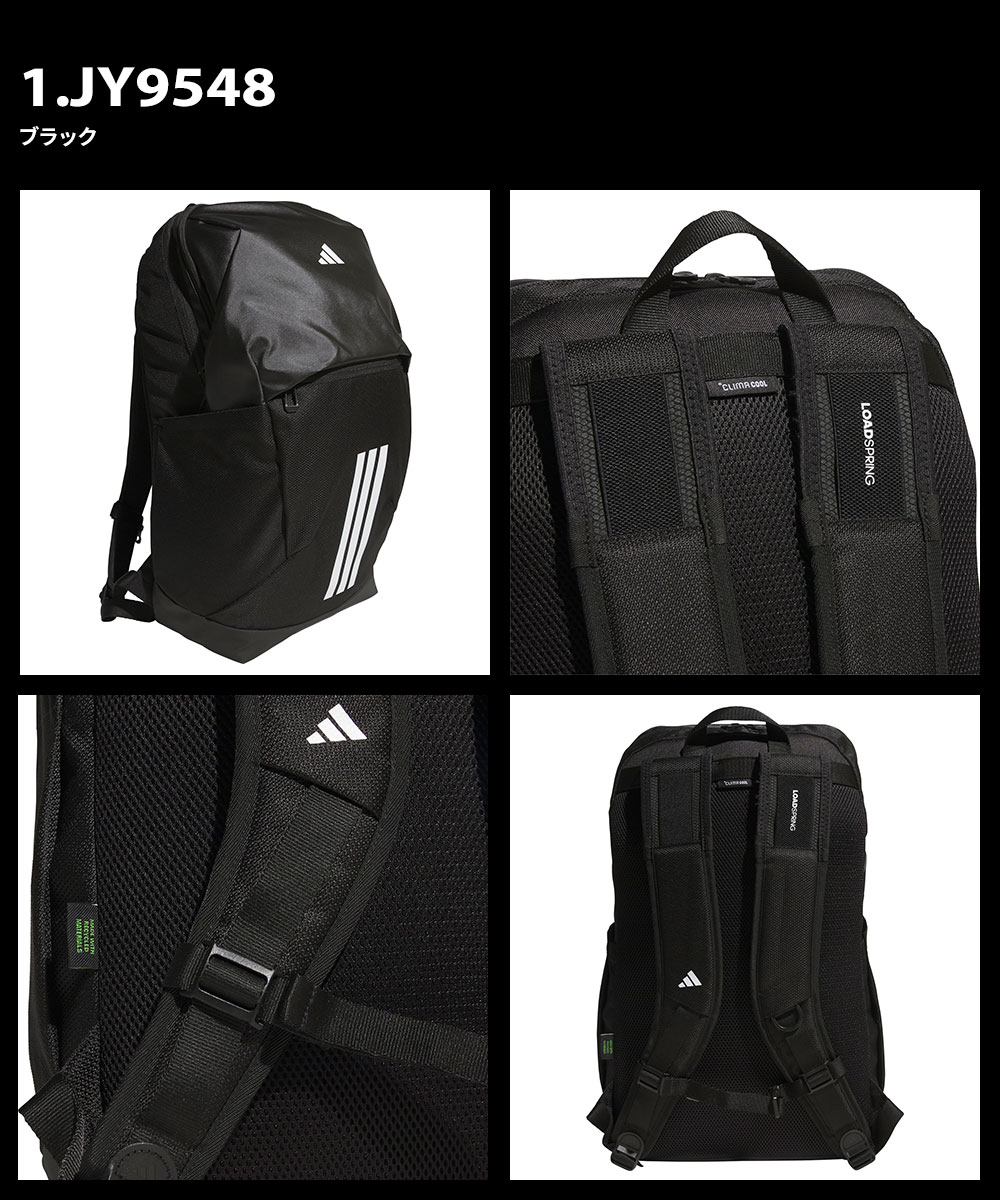 アディダスのロードスプリングショルダーハーネスは衝撃を吸収し、重い荷物でも長時間快適に持ち運べる。
