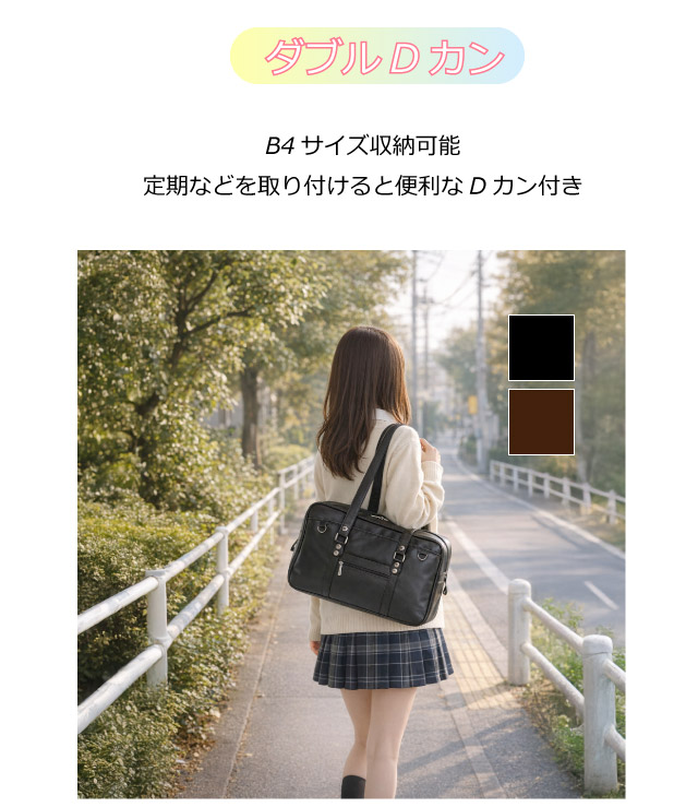 スクールバッグ 合皮 通学カバン スクールバック 高校生 合皮 ブラウン 男子高校生 女子高生 中学生 通学カバン 通学バッグ サブバッグ スクバ シンプル スクールボストン 女子 通学用 高校 中学 学校 鞄 かばん スクール バッグ 合皮スクールバッグ Dカン付き mtb-2911