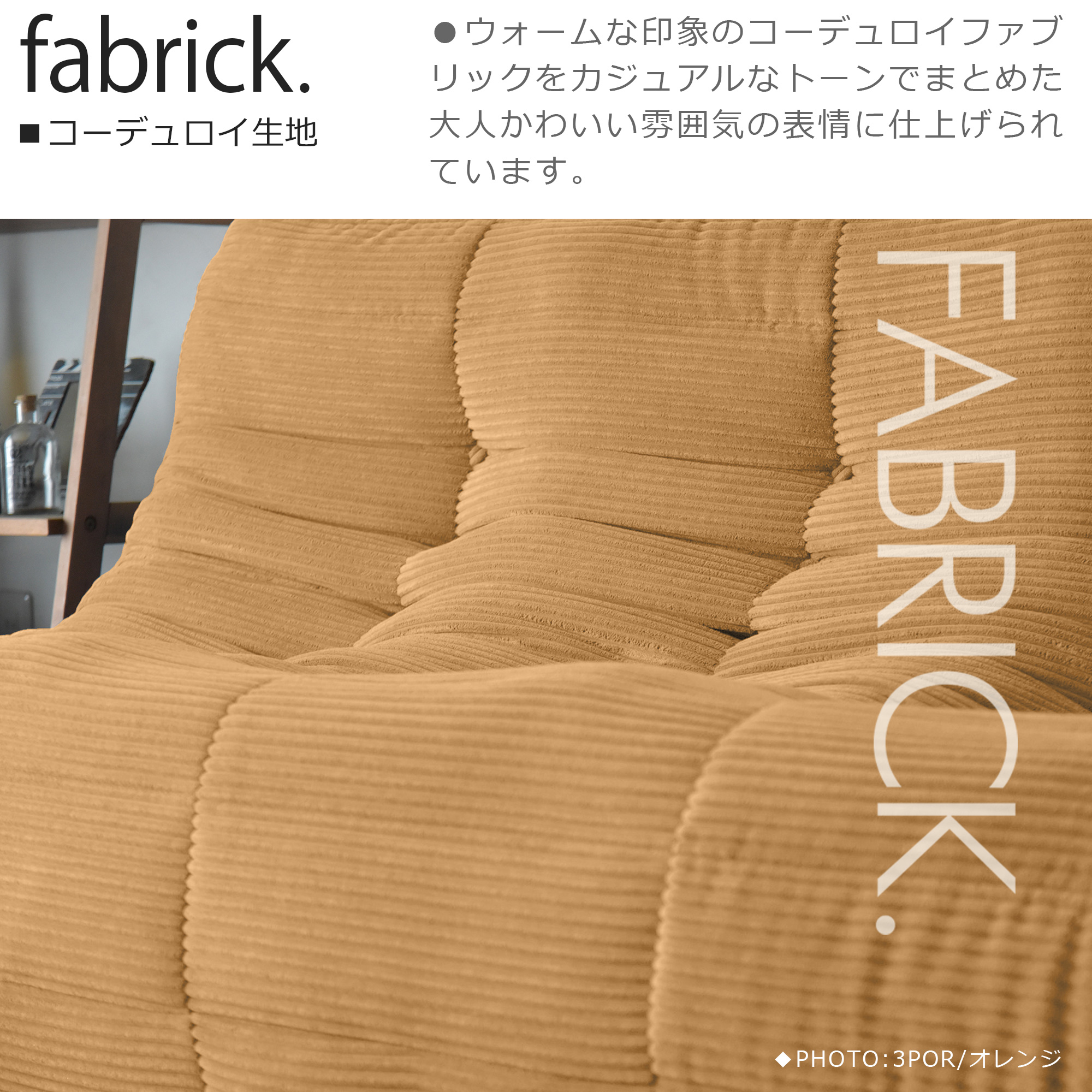 ファブリック素材のモコモコとした質感が、ふかふかの座り心地を体感できます。
