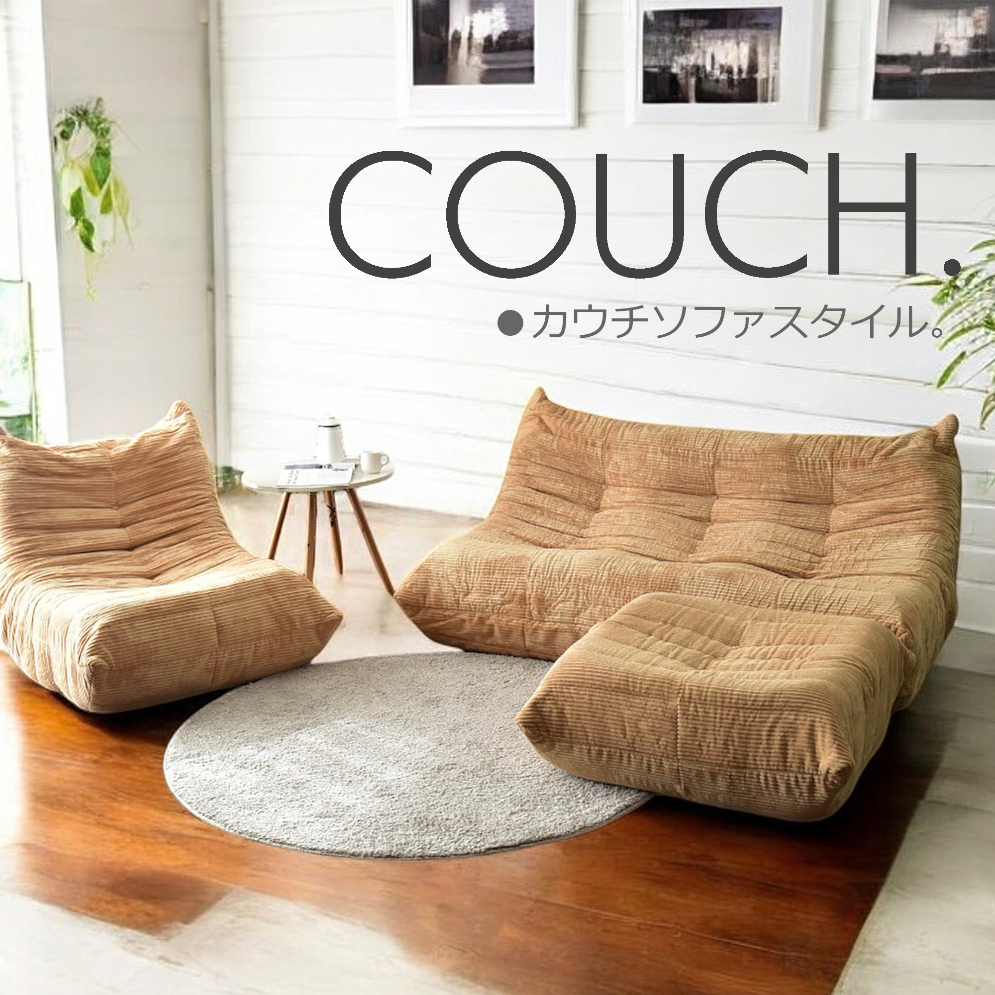 こちらの圧縮ソファは、シンプルでありながら北欧や西海岸スタイルにぴったりのデザインが魅力です。