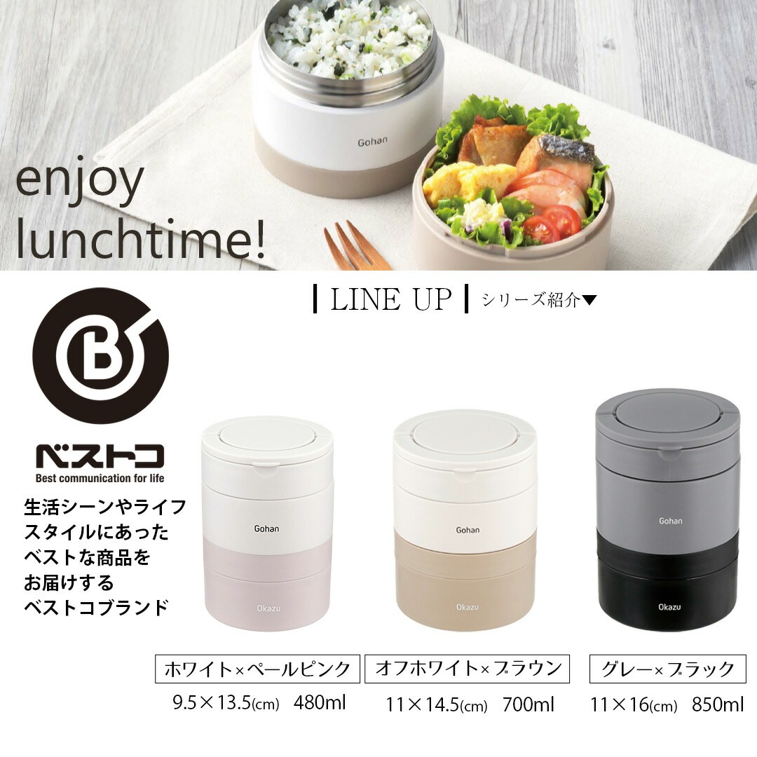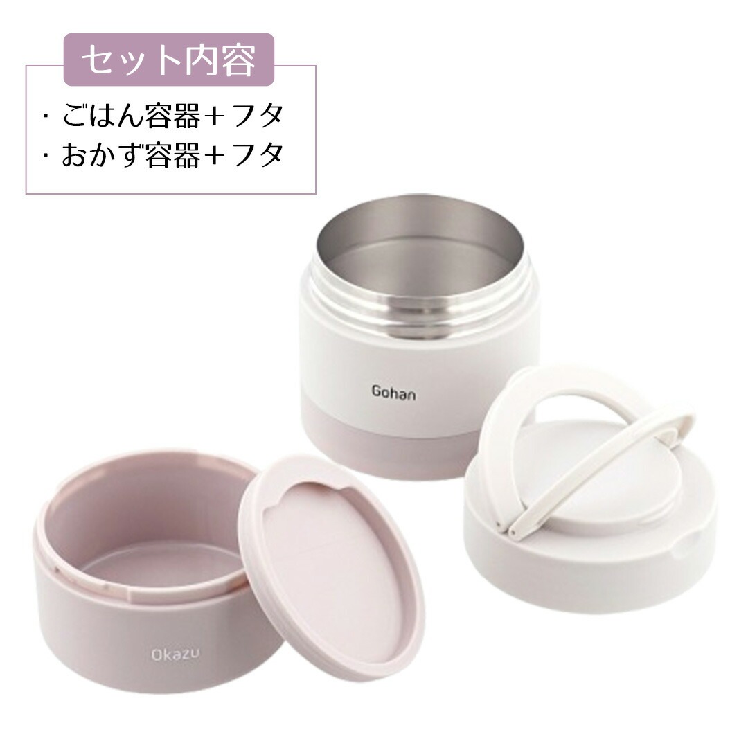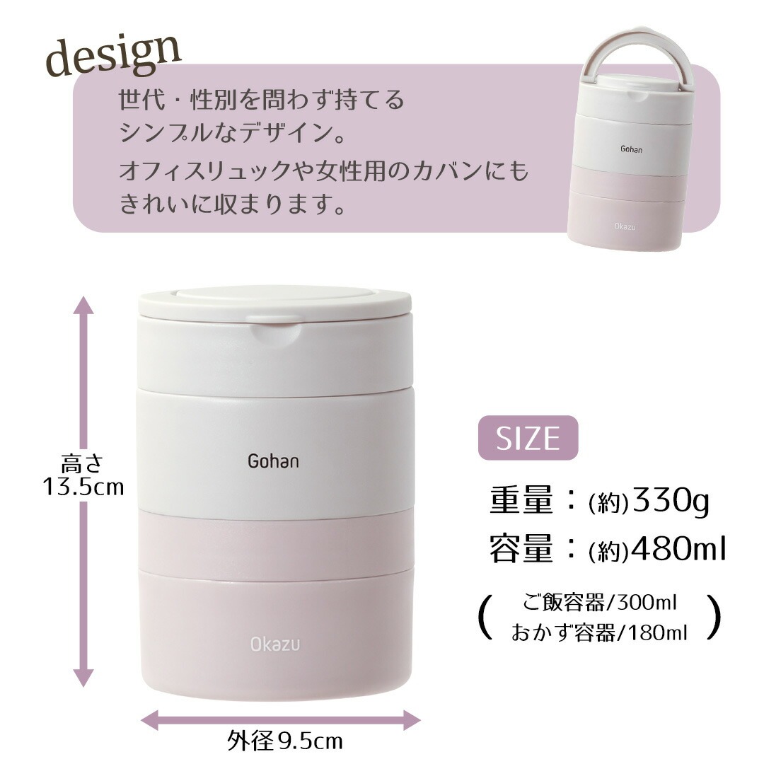 弁当箱 2段 ランチボックス つながる保温弁当箱 ハンドル付き 480ml | ペールピンク 真空 保温弁当箱 パッキン おしゃれ 大人 くすみカラー かわいい 白