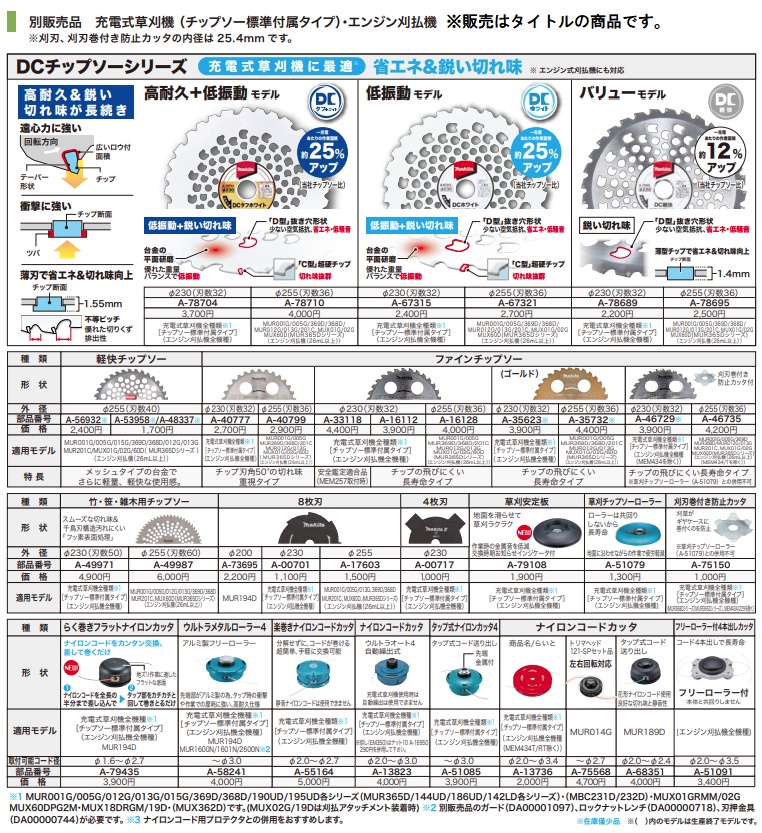 適用モデル:充電式草刈機全機種※(チップソー標準付属タイプ)