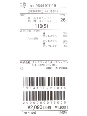・パンツ部分:ポリエステル62% 綿33% ポリウレタン5%