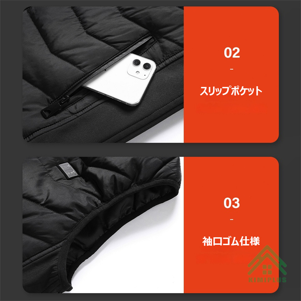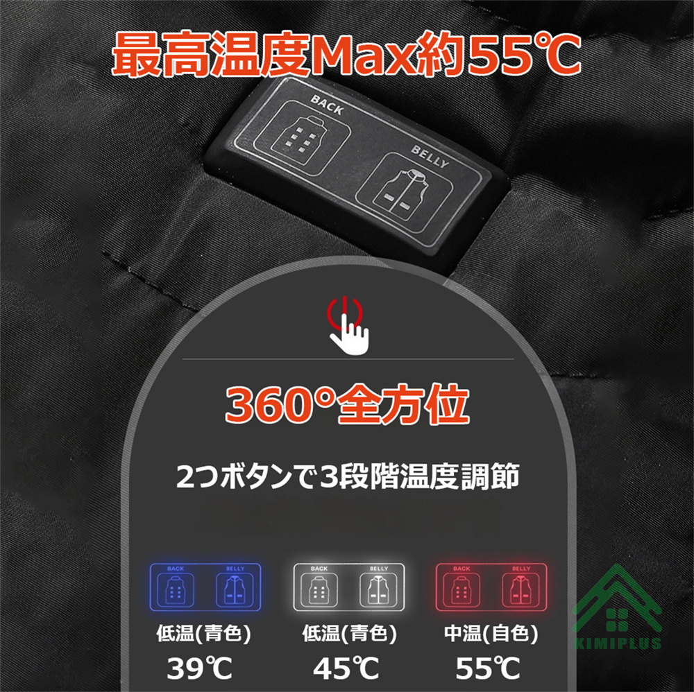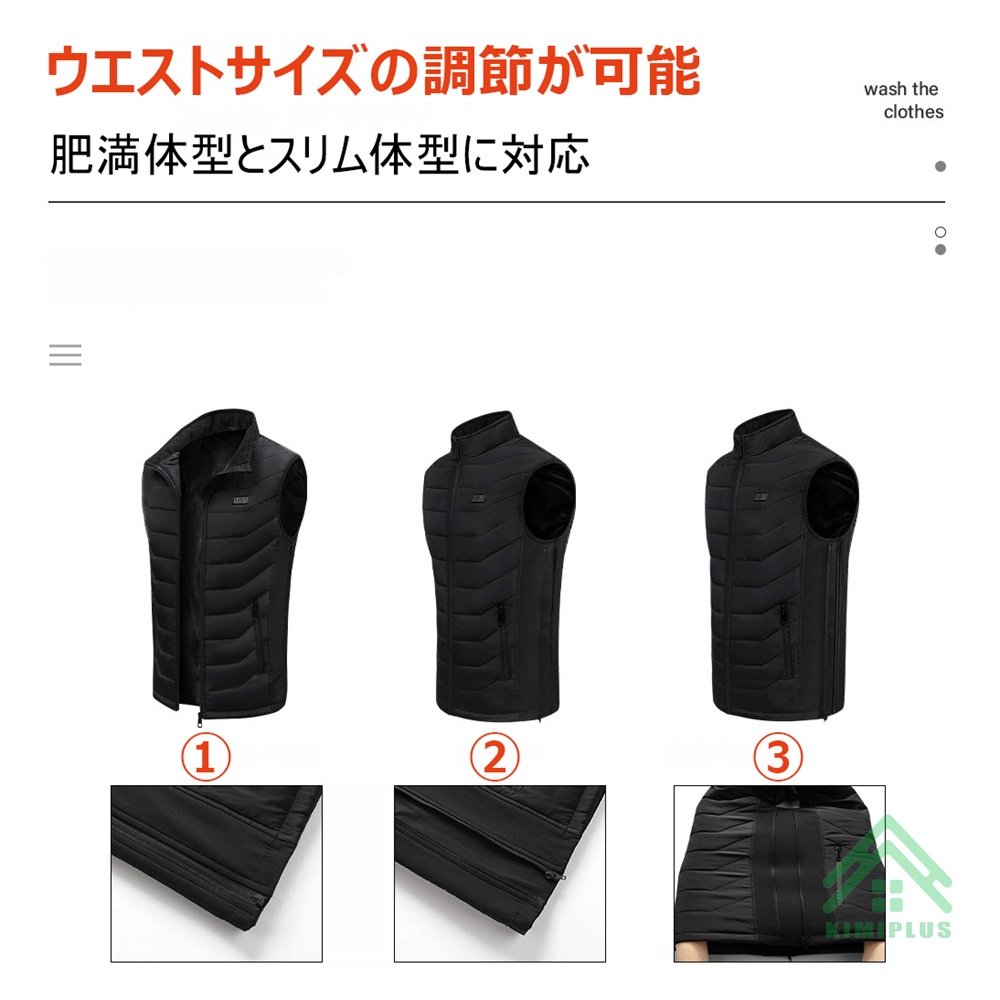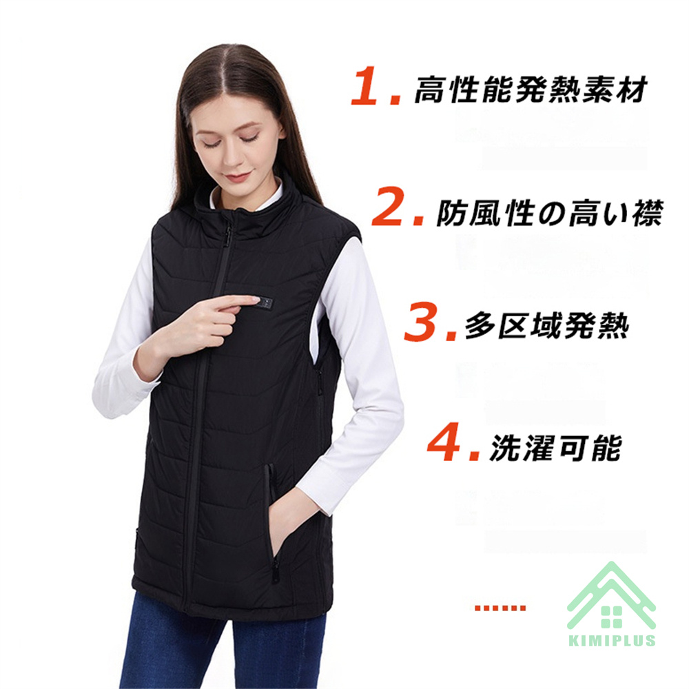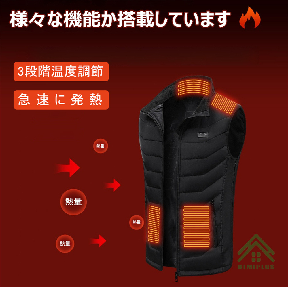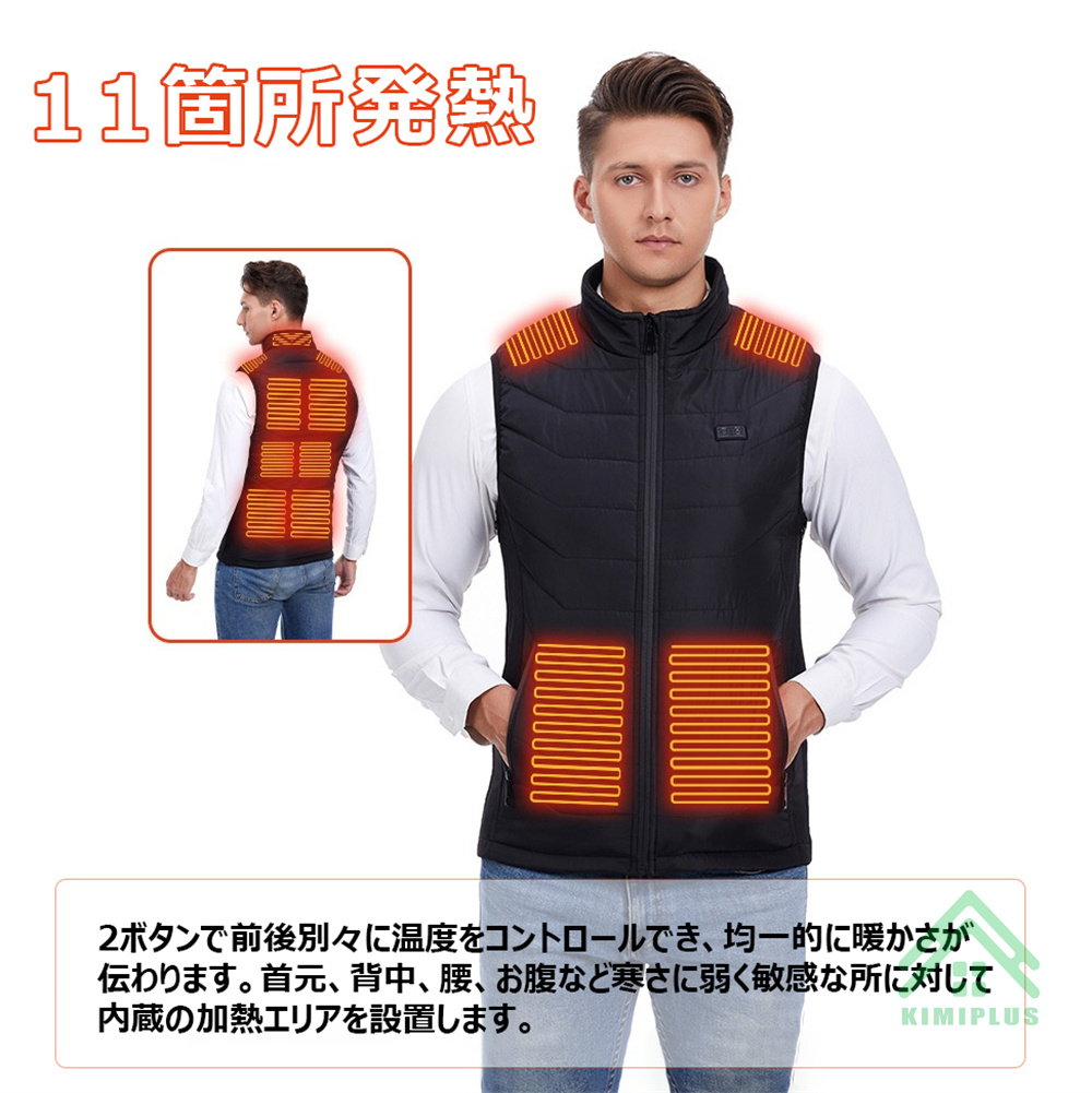電熱ベスト 日本製 繊維ヒーター ヒーターベスト 発熱ベスト 11つヒーター 3つボタンで独立制御 3段階温度調節 USB給電 極暖 水洗い可能 アウトドア 敬老の日
