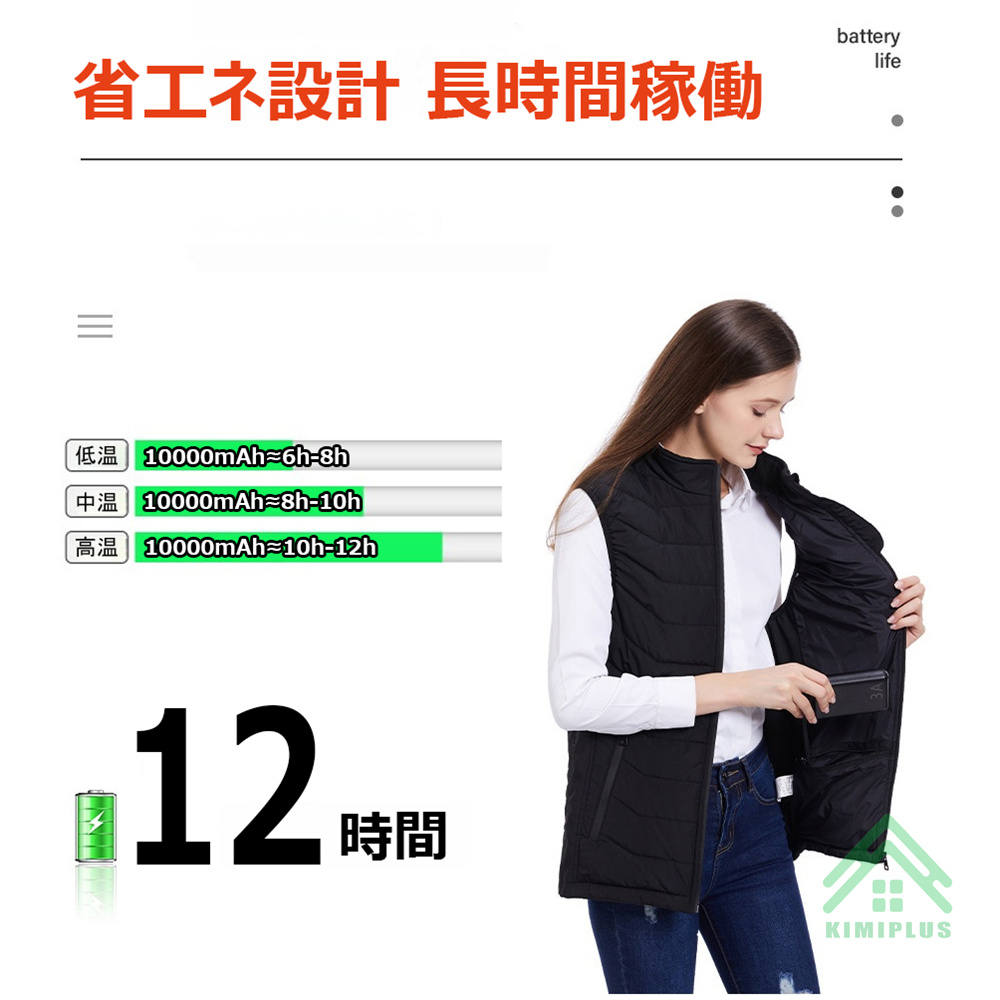 前後の加熱ヒーターが内蔵され、効率よく温まり、寒い季節の給電式ベストです。男女兼用で、通勤通学など普段使いはもちろん、登山などのアウトドア活動までも大活躍、冬を思う存分楽しむことができます。