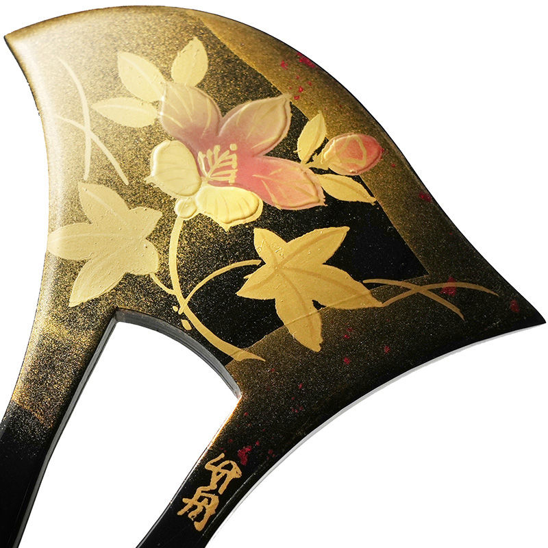 伝統的な和の文様が蒔絵風に描かれた優美なかんざしです。