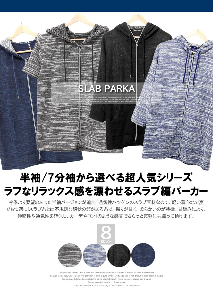 ラフなリラックス感を漂わせるスラブ編みジップアップパーカー。