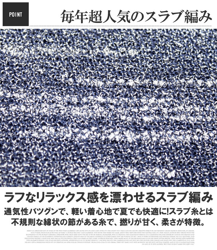 通気性バツグンのスラブ素材なので、軽い着心地で夏でも快適に!