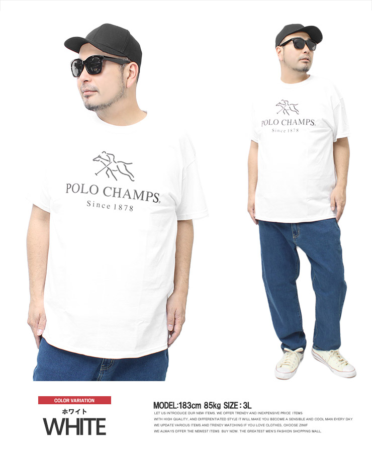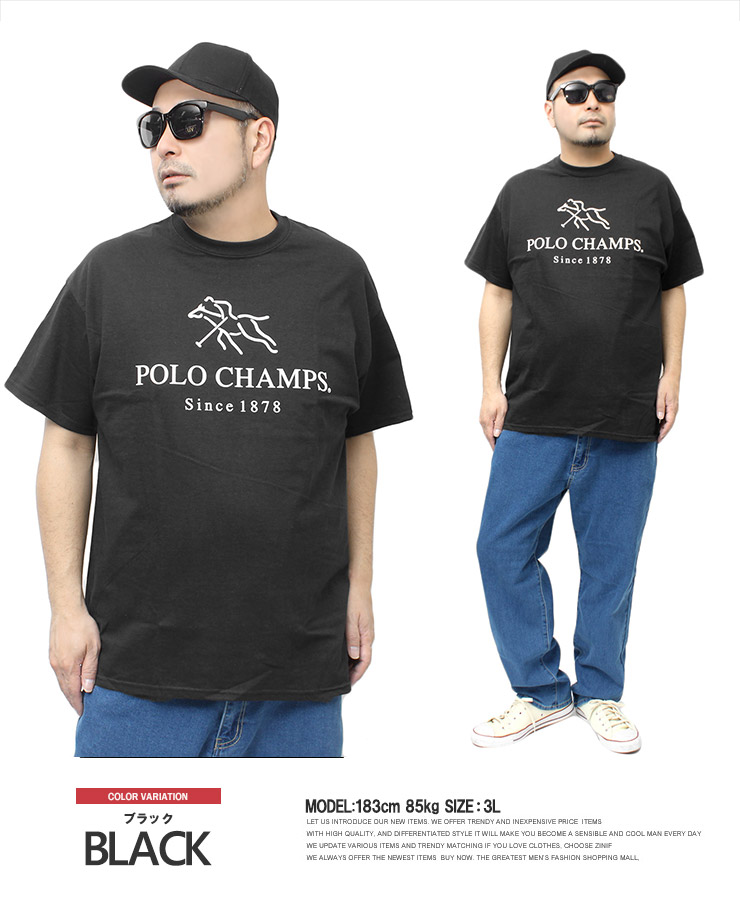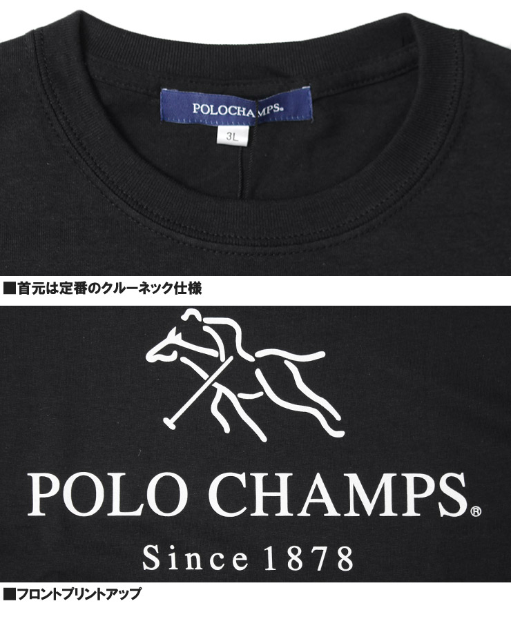 セール POLO CHAMPS ポロチャンプス 半袖 Tシャツ メンズ 大きいサイズ ロゴ プリント クルーネック カットソー 安い ワークマン プラス