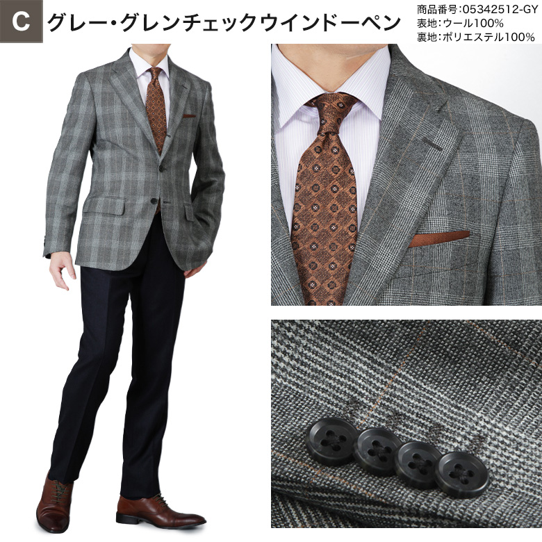 【C】グレー・グレンチェックウインドーペン(05342512-GY)